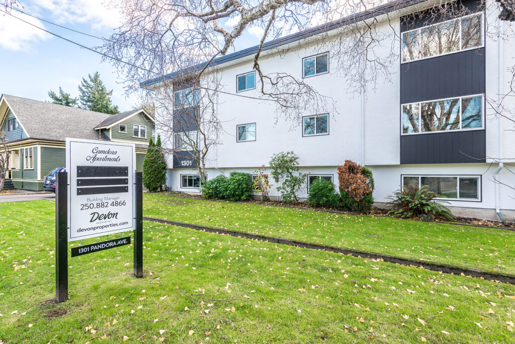 Camdora Apartments is a three-storey, 13-unit apartment building comprised of bachelor and one-bedroom suites. Available suites have been newly renovated with brand new appliances, vinyl plank flooring, and new bathrooms. This property is located at 1301 Pandora Avenue in Fernwood, Victoria, just a few minutes walk from Downtown, and steps away from a large variety of local shops, restaurants, cafes and grocery stores. Its central location also allows for easy access to major bus and bike routes.