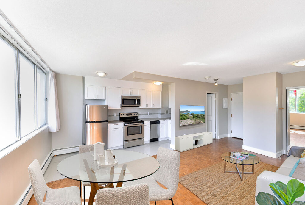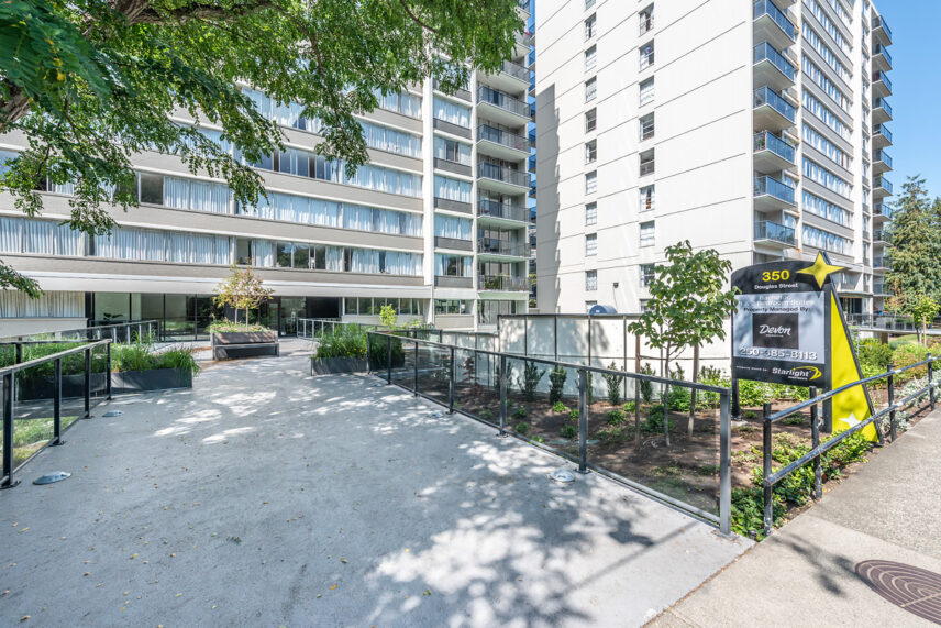Goodacre Towers South, located across the street from Beacon Hill Park, is a fourteen-storey, 98-unit building consisting of bachelor, one- and two-bedroom suites. All available units have been newly renovated with stainless steel appliances, new cabinetry and beautifully upgraded kitchens and bathrooms. In addition, residents enjoy an outdoor swimming pool and hot tub for their exclusive use and convenience. Goodacre Towers South is situated on the edge of Downtown and James Bay – just steps from James Bay Square, local retail amenities, restaurants and a 24 hour Thrifty Foods.