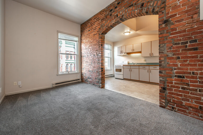 Grand Central Apartments is a three-storey brick Heritage building comprised of retail space on the ground floor and 15 residential units on the upper floors, ranging from bachelor, one- and two-bedroom suites. The building is known for its “arcade” hallway that is home to retail spaces and a small courtyard and alleyway behind the property. Grand Central Apartments is conveniently located at 553 Johnson Street in the heart of Downtown Victoria, only steps from local retail and restaurants, the Inner Harbour and Victoria’s Chinatown. These unique suites offer a range of layouts, some of which include exposed brick walls and unique architecture.