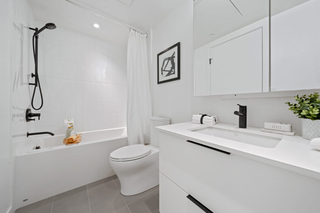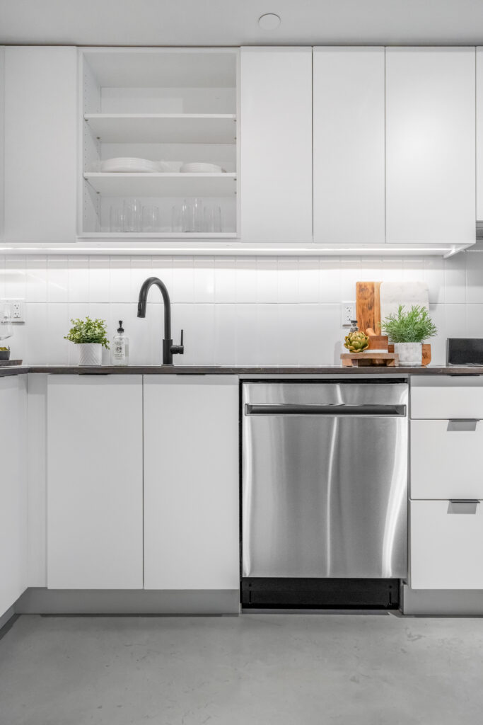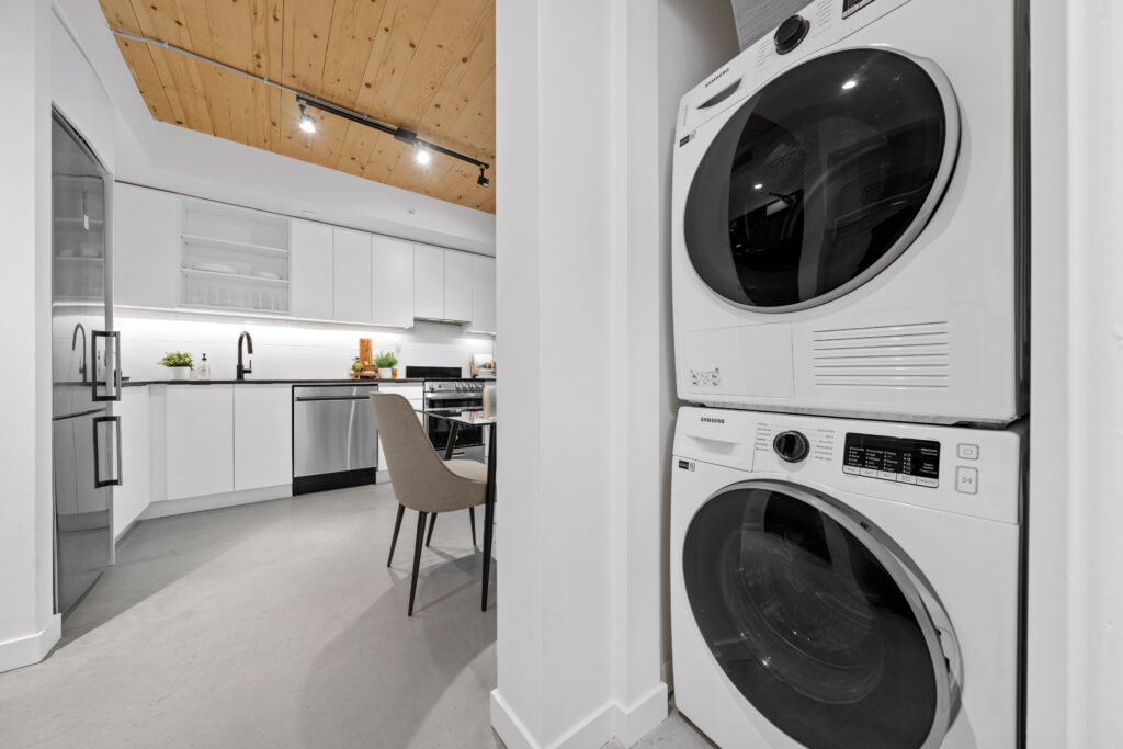 Each suite offers modern kitchens with ample storage, beautiful clean line white cabinetry with matte black accents and fixtures, as well as new high-end appliances such as dishwashers and in-suite laundry in every unit. Residents can take advantage of amenities including the expansive rooftop patio to enjoy and entertain friends and family with view of the North Shore Mountains, secure storage, and underground parking.