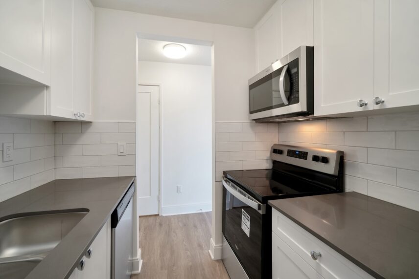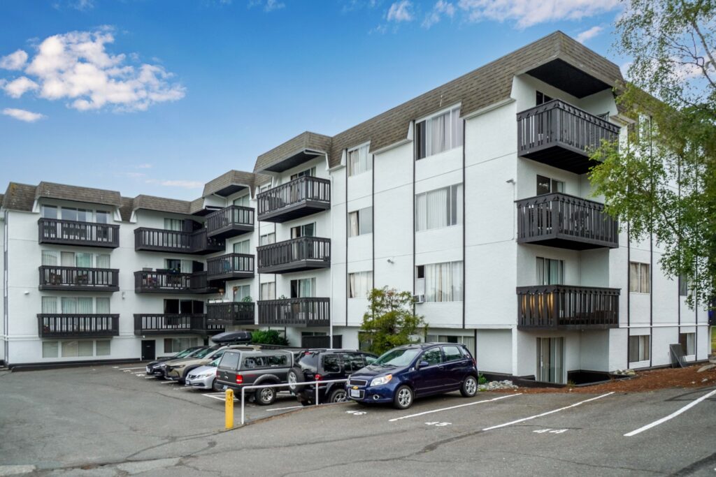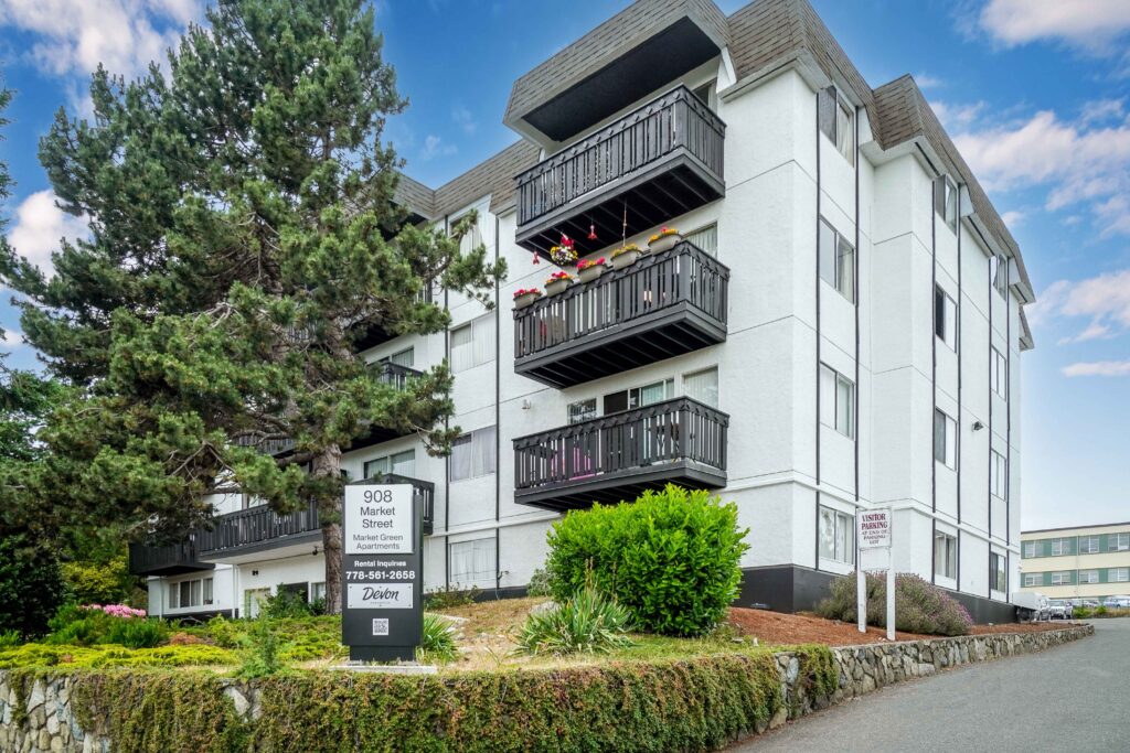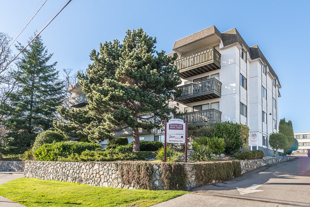 Market Green is a four-storey, 55-unit apartment building comprised of bachelor and one-bedroom suites, with a balcony attached to every upper floor unit. All available units have been newly renovated with stainless steel appliances, new cabinetry, and beautifully upgraded kitchens and bathrooms. The property is located in the Hillside/Quadra neighborhood with two parks just outside its doorstep, and with convenient access to major bus routes.