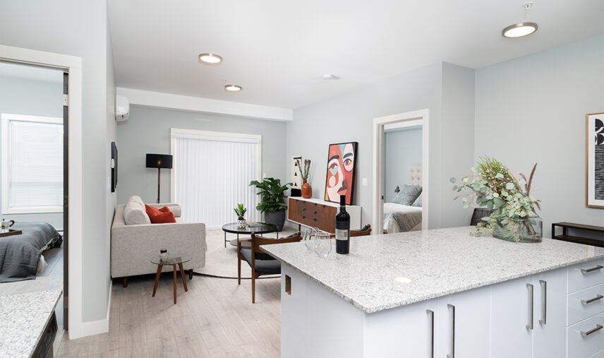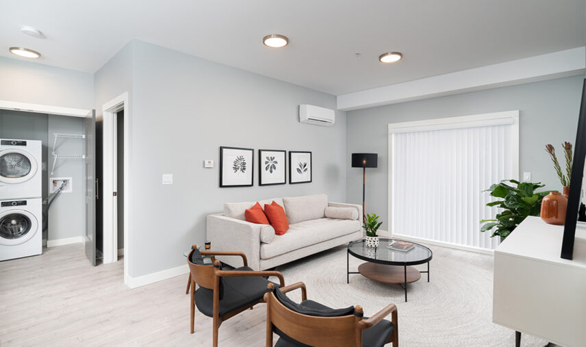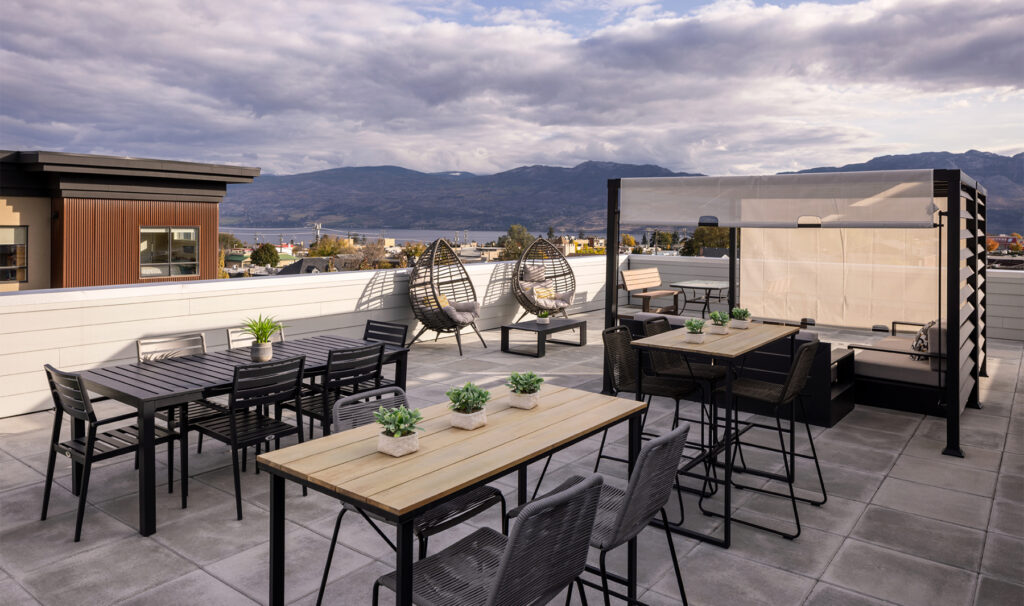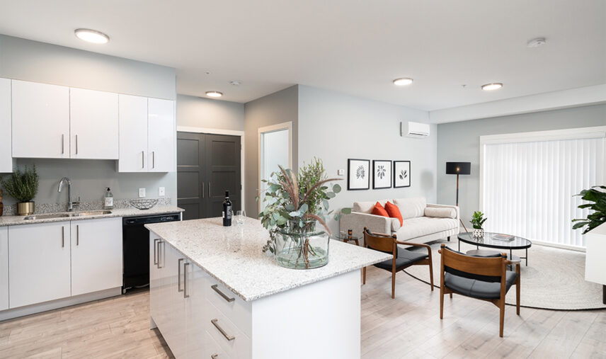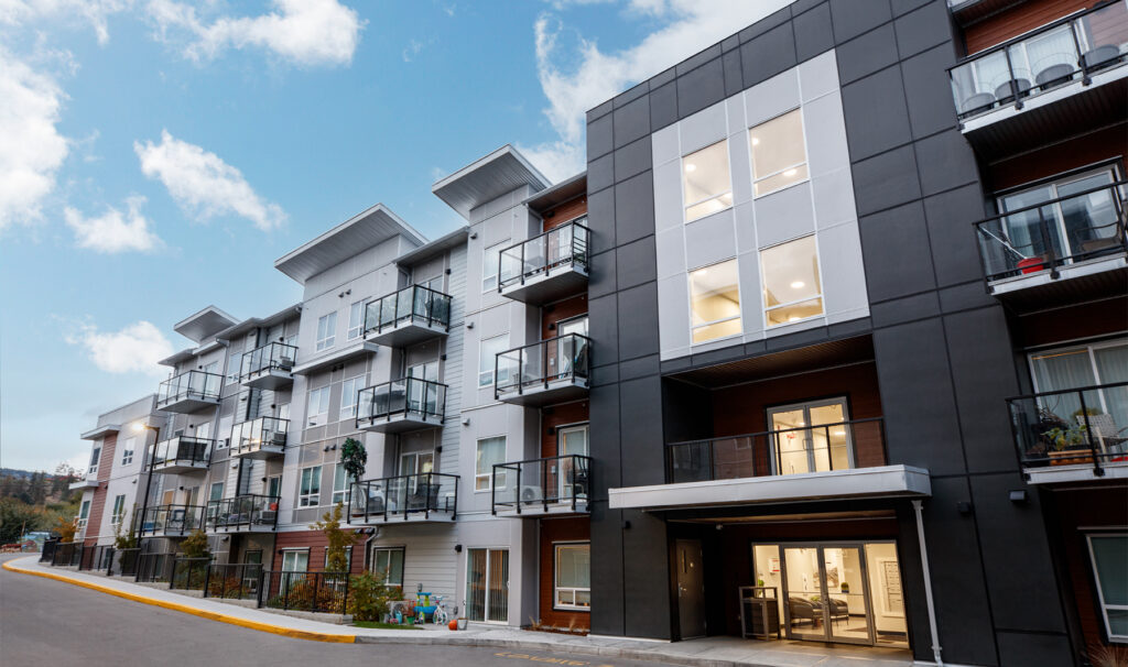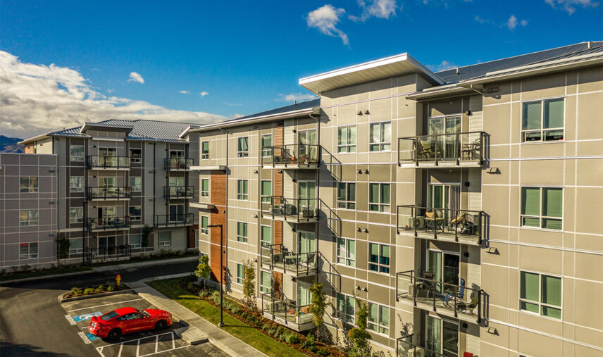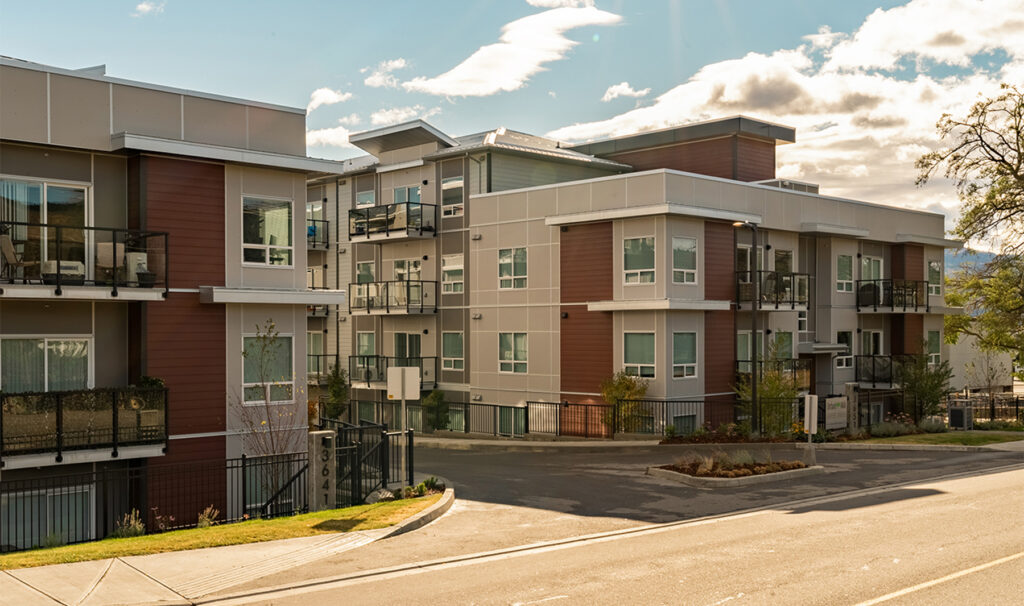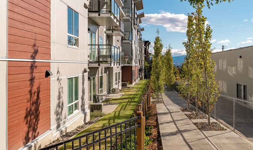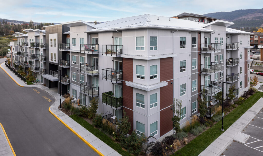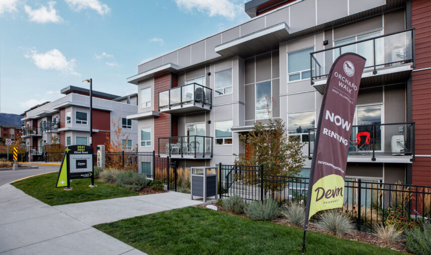 Orchard Walk is a four-storey, 140-unit two-building apartment complex located in West Kelowna. The new development offers a mix of one-, two-, and three-bedroom suites, with spacious layouts, contemporary kitchen aesthetic, and new appliances including in-suite washer/dryer. Residents enjoy many perks such as a fitness centre and a pet washing facility for their exclusive use and convenience. Orchard Walk’s location provides a rural feel with urban advantages, with proximity to shopping amenities, local restaurants, and public transit.