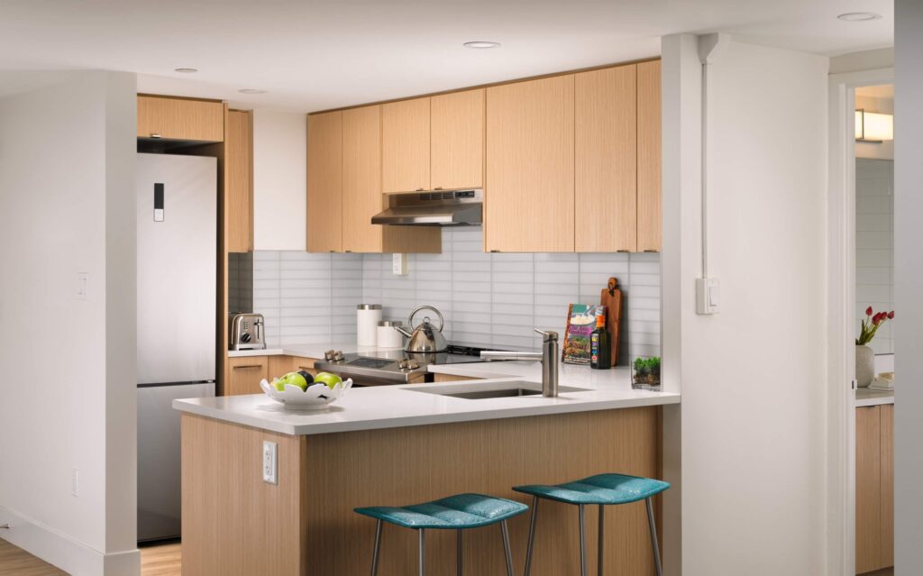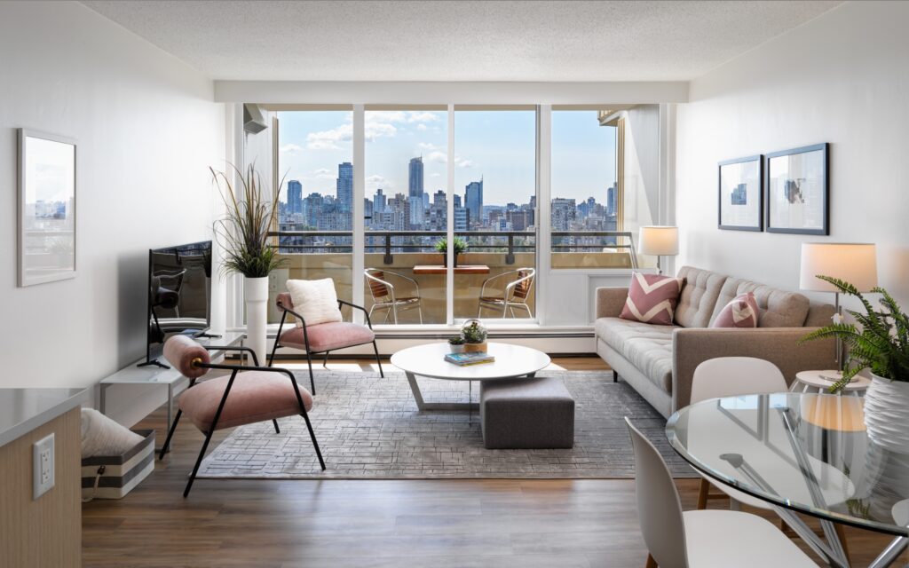 Shoreline West End Apartments, the former Coast Plaza Hotel – an iconic landmark on Denman Street – has been tastefully re-designed and revitalized into a boutique collection of 316 rental homes. The property offers a mix of bachelor, junior one-, one- and two-bedroom suites ranging from 496 Sq Ft to 1115 Sq Ft. Each rental home offers contemporary finishes and a neutral colour palette, complete with stainless steel appliances, custom cabinetry, and polished quartz countertops. The larger suites and penthouse residences are exceptionally spacious, and all homes have an outdoor balcony. The tower rises 32-storeys, making it one of the tallest towers in the West End and offering spectacular views of English Bay, Coal Harbour, Stanley Park, the mountains and the city of Vancouver.