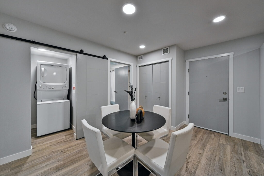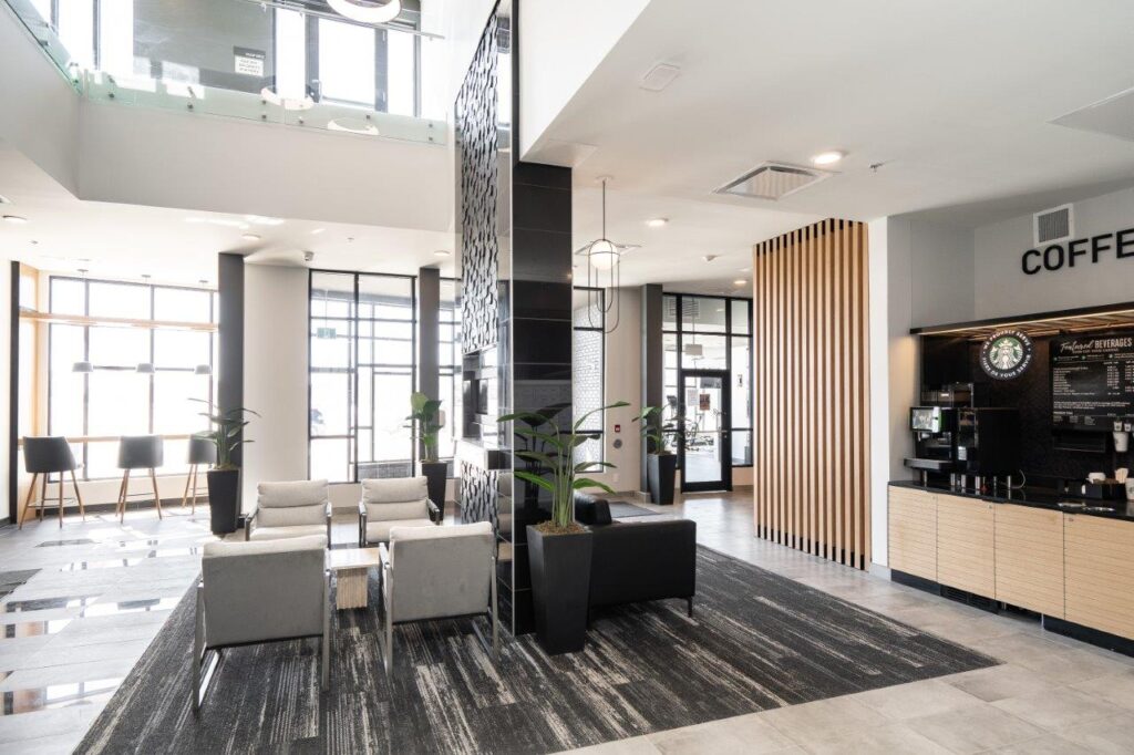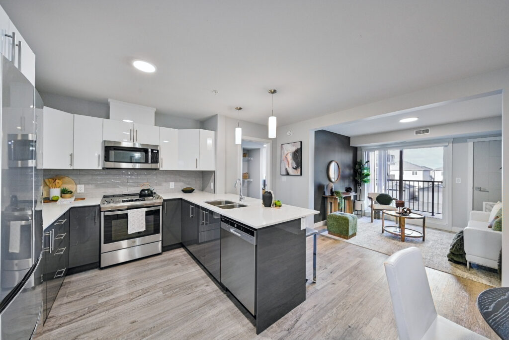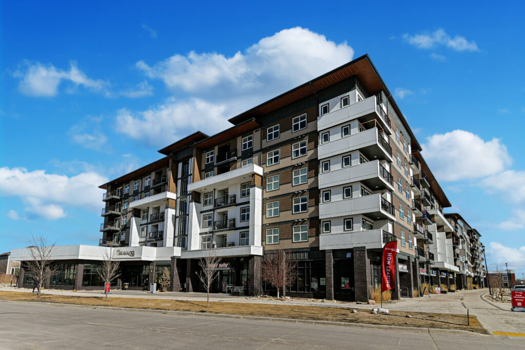 Located in the heart of Bridgwater Centre, The Bravado Apartments is a 6-storey, 149-unit luxury pet-friendly rental apartment community in Winnipeg. It offers modern, spacious, and open concept one-, two-, and three-bedroom suites. Each floorplan includes premium features and finishes like quartz countertops, stainless steel appliances, tile backsplashes, oversized bathtubs, vinyl plank flooring, as well other features such as in-suite laundry, dishwashers, private balconies and walk-in closets.