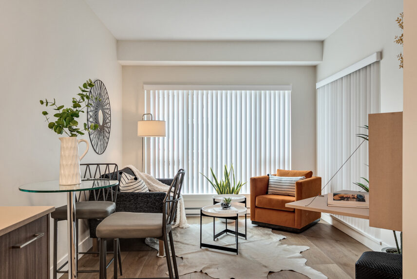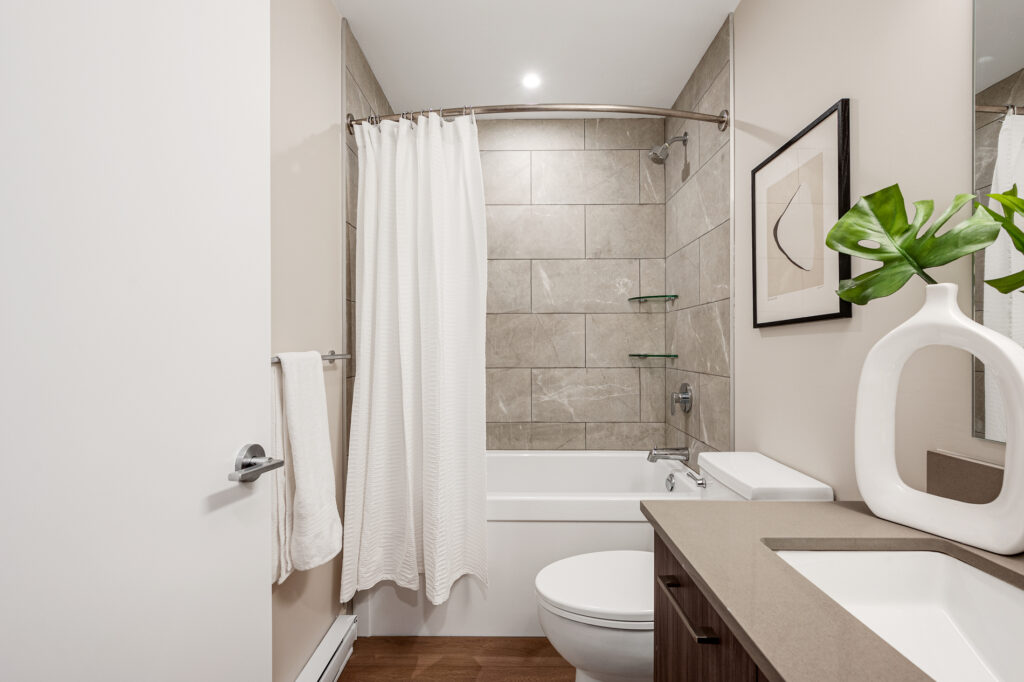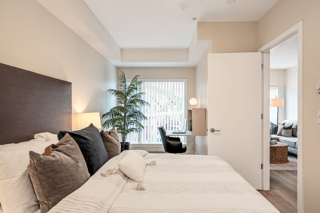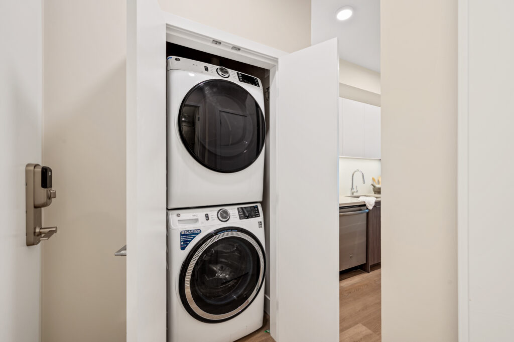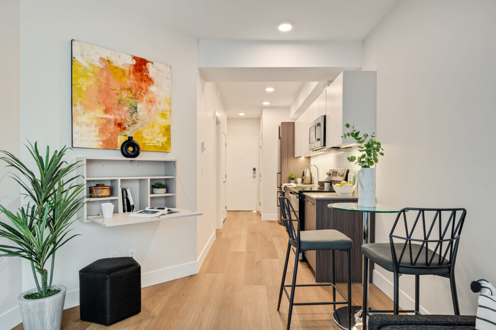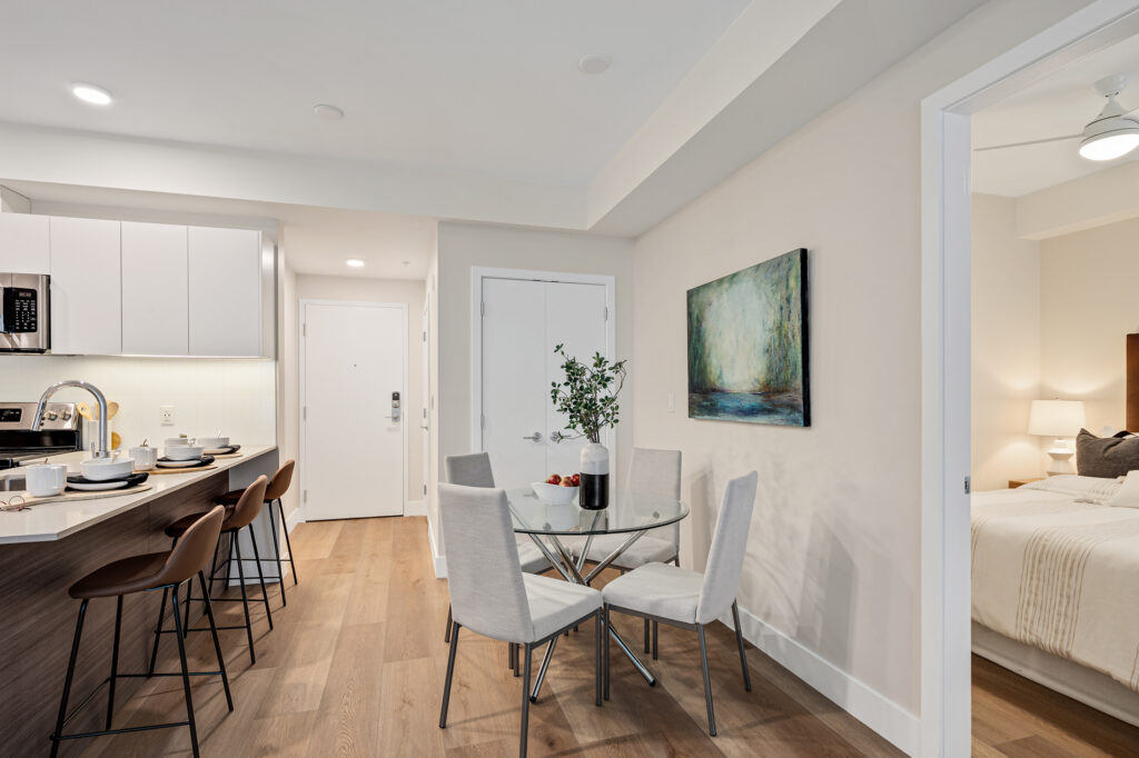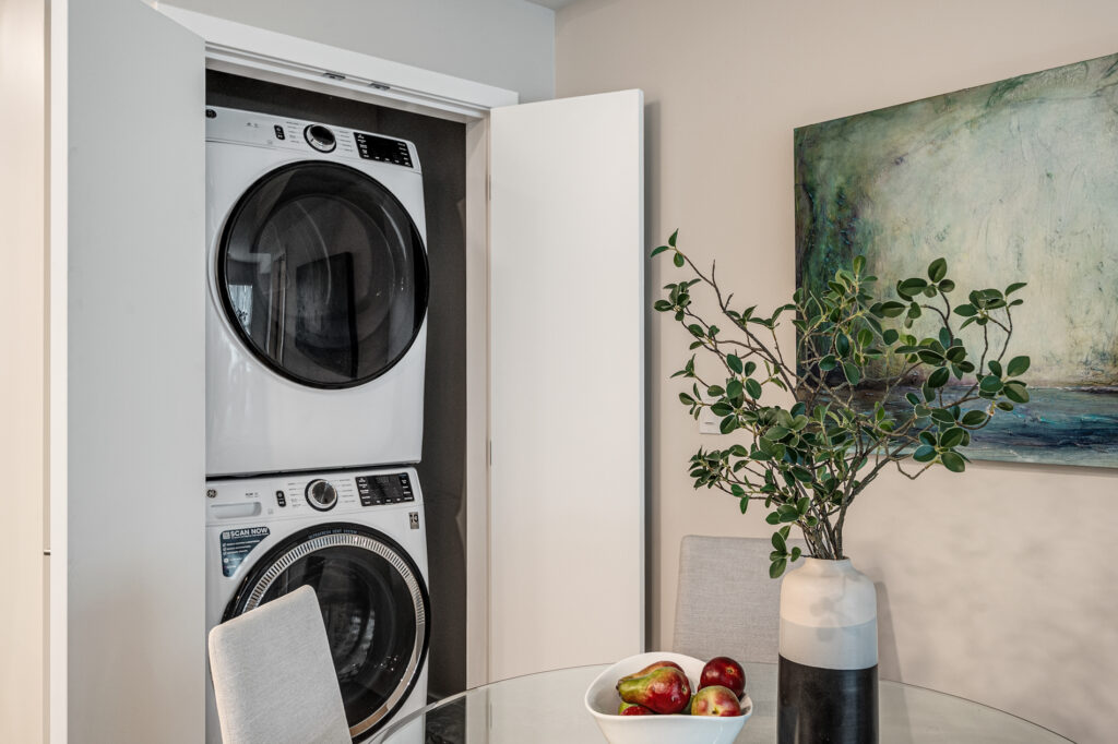 Each home has been thoughtfully considered and well-built for daily life, offering sleek kitchens with quartz countertops, premium finishes, and modern white cabinetry. Each unit also includes high-end suite features such as stainless steel appliance packages, in-suite laundry, spacious balconies, and more.