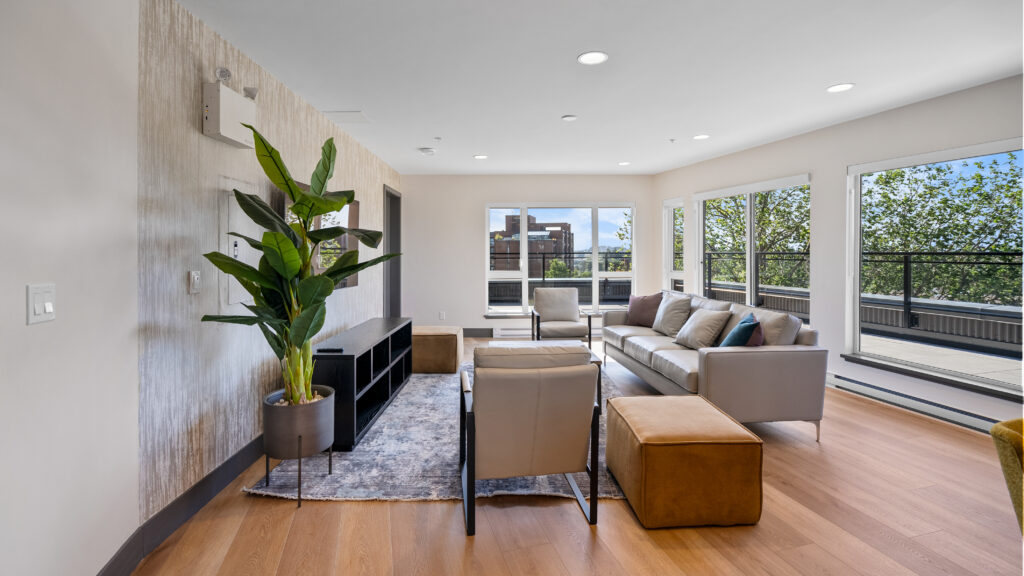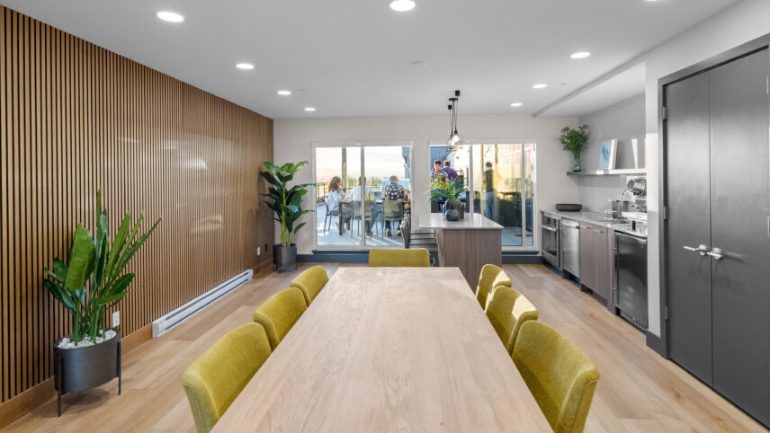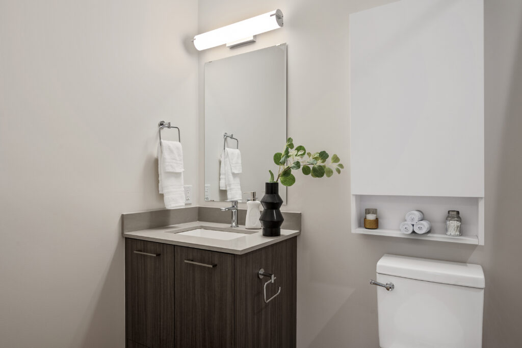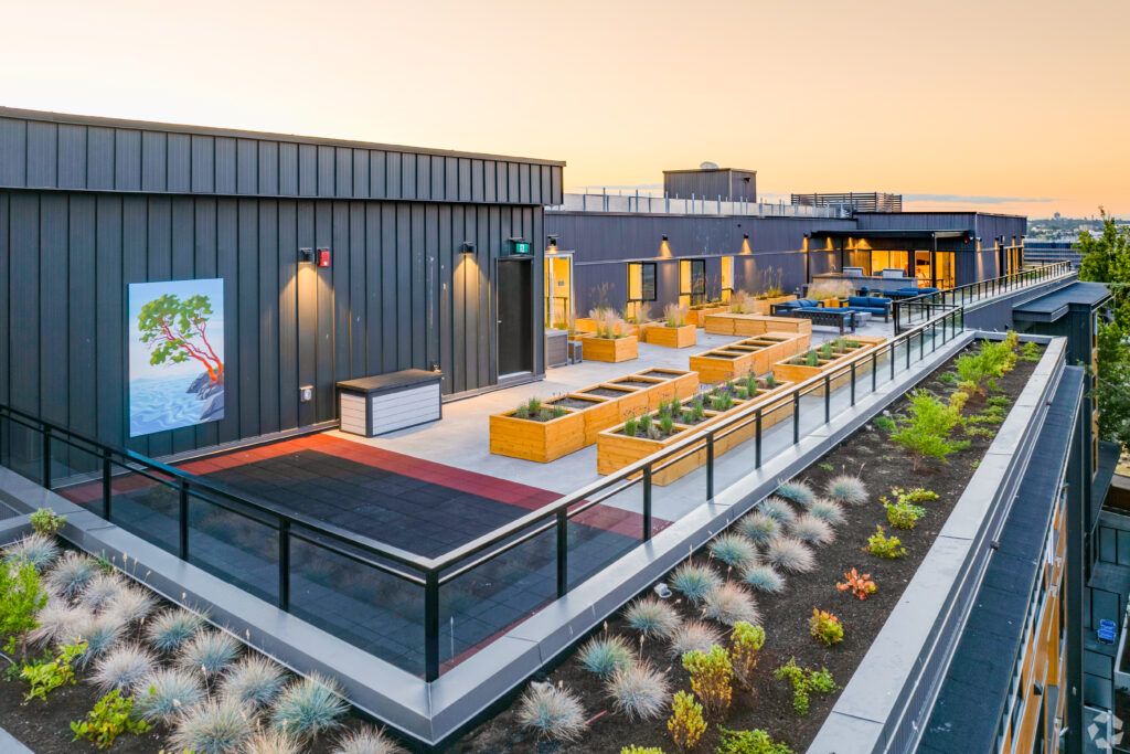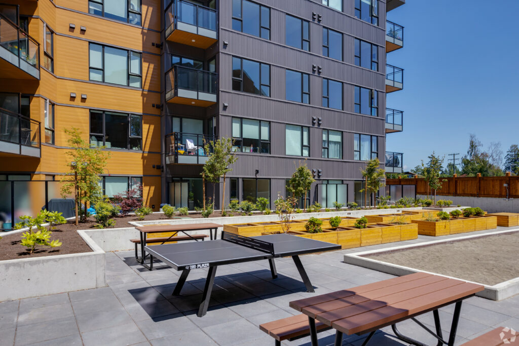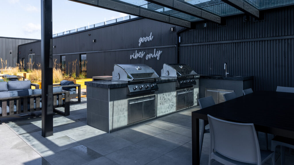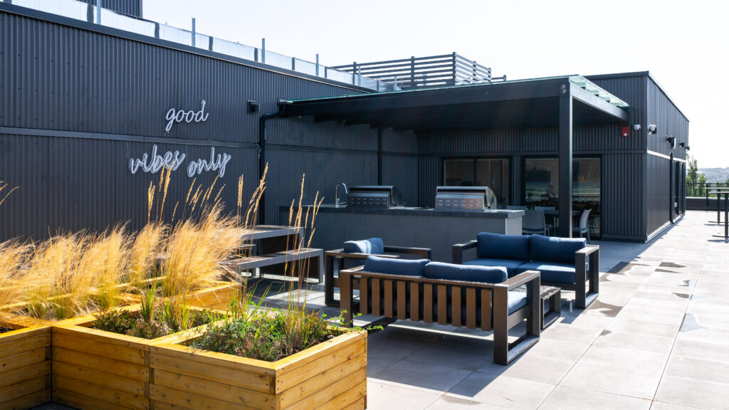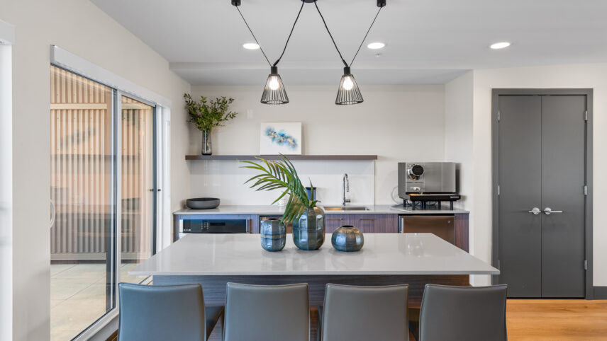 Entertain friends and family in the rooftop clubhouse or relax at the outdoor skylounge, beautifully furnished with shared BBQ areas, picnic tables, low, sofa-style seating and a gas firepit. Residents will also enjoy other amenities including a ground floor courtyard with a bocce court and children’s play area, an on-site car washing station, dog washing facility, secure underground parking and bicycle storage with repair facilities, and much more!