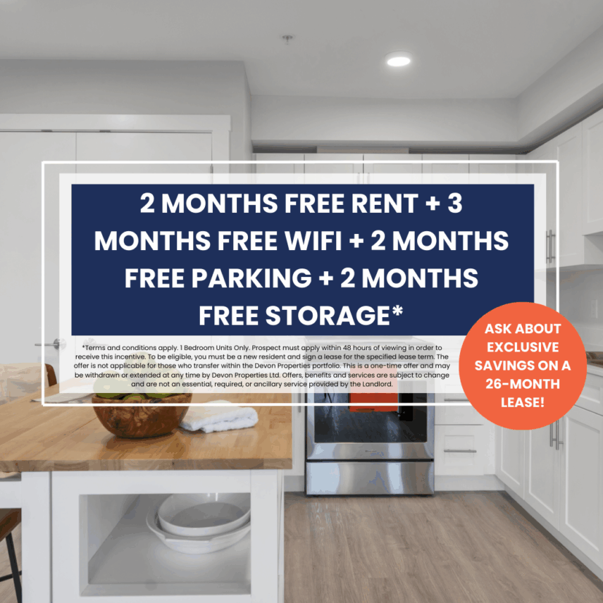 Receive 2 Months FREE RENT + 3 Months FREE WIFI + 2 Months FREE PARKING + 2 Months FREE STORAGE When You Sign a New 13 Month Lease*