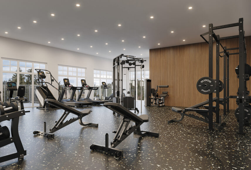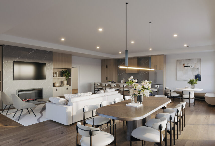 Thera’s design emphasizes shared spaces and lifestyle-oriented amenities. Residents will have access to an indoor rooftop lounge with a shared kitchen, an outdoor rooftop terrace, co-working space, and a fully equipped fitness centre. These amenities are designed to support social connection, flexibility, and everyday convenience while taking advantage of the building’s elevated views and lakefront location. In addition, tenants enjoy access to McKinley Beach’s community amenity, Our Place, located just a short walk away and offering a pool, hot tub, sport courts, playground, and additional shared recreational spaces.